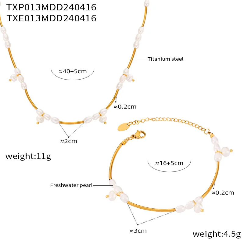 Elegant Stainless Steel Chain Necklace Bracelets for Women Freshwater Pearl Beads Handmade Women Wedding Jewelry Set